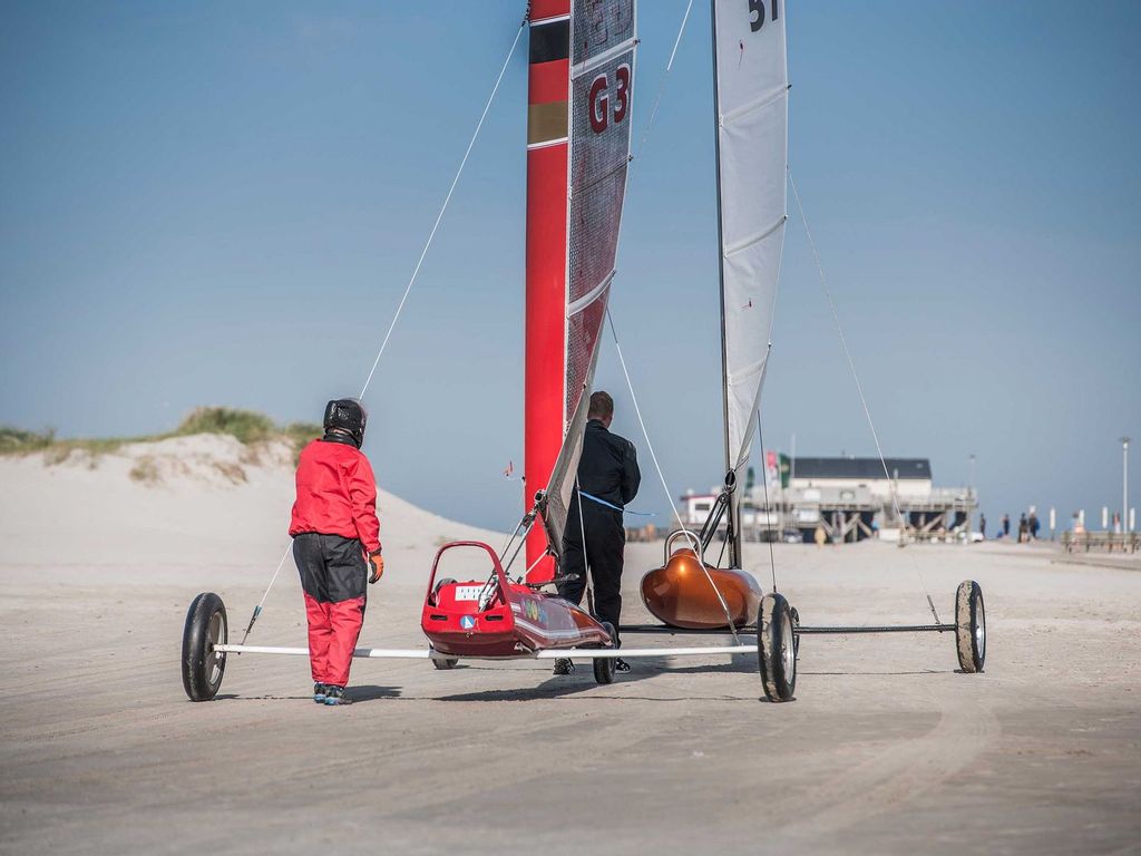 3 Räder, ein Kite oder ein Segel und bis zu 100 km/h schnell – Strandsegler und Kitebuggys prägen unser Strandbild und sind einzigartig in Deutschland. Das Fahrgebiet befindet sich zwischen St. Peter-Ording und St. Peter-Bad. Wichtig: Es ist eine Fahrerlizenz nötig, welche mit einer Lizenzprüfung erworben werden kann.