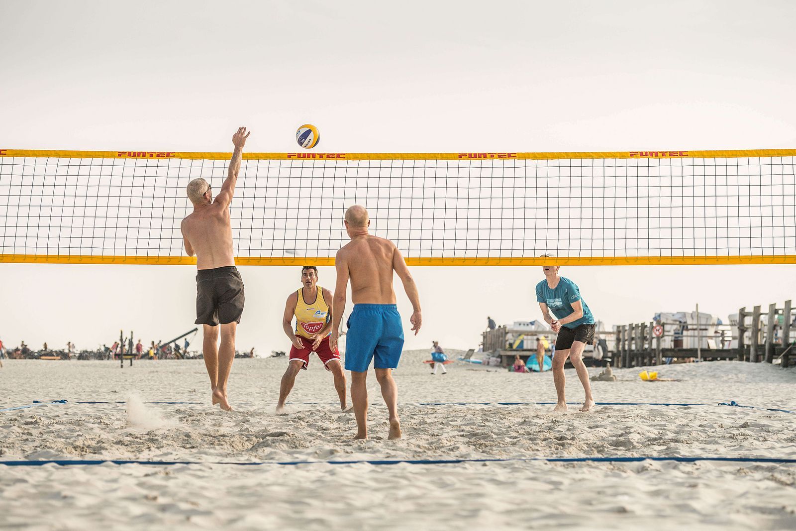 Unser weicher und feiner Sand ist ideal geeignet zum Volleyball spielen. An allen fünf Badestellen stehen Volleyballfelder zur Verfügung und wer keinen Ball dabei hat, kann sich diesen bei der Badeaufsicht ausleihen. Im Sommer findet in unserer Gemeinde zudem die Techniker Beachtour am Ordinger Strand statt – das Beachvolleyball-Event an der Nordsee.