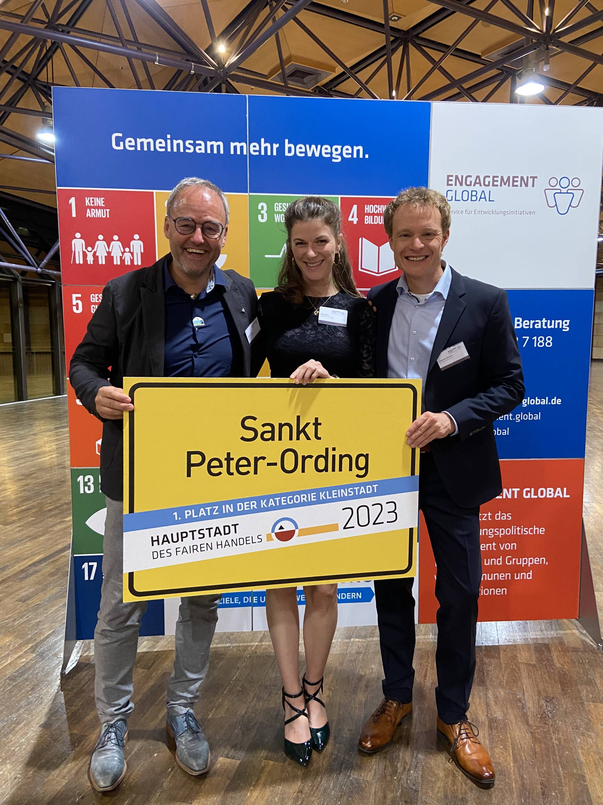 Bei der erstmaligen Teilnahme an dem Wettbewerb „Hauptstadt des Fairen Handels“ schaffte es St. Peter-Ording auf Anhieb auf den ersten Platz. Im Rahmen einer feierlichen Preisverleihung wurde der Küstenort im Beisein der Parlamentarischen Staatssekretärin im Entwicklungsministerium, Dr. Bärbel Kofler, am 5. Oktober 2023 in Fürth für sein Engagement in den Bereichen Fairer Handel und Faire Beschaffung ausgezeichnet. Als Gewinner des 1. Platzes erhält St. Peter-Ording ein Preisgeld von 35.000 Euro.